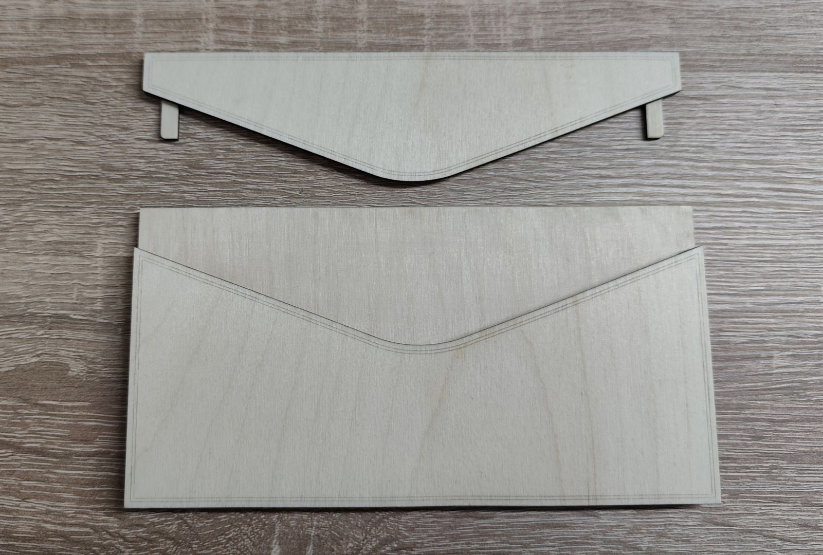 Specifikace: Březová překližka 3 mm, rozměry výška 95 mm, šířka 185 mm, hloubka 10 mm.