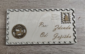 Specifikace: Březová překližka 3 mm, rozměry výška 150 mm, šířka 110 mm, hloubka 50 mm.