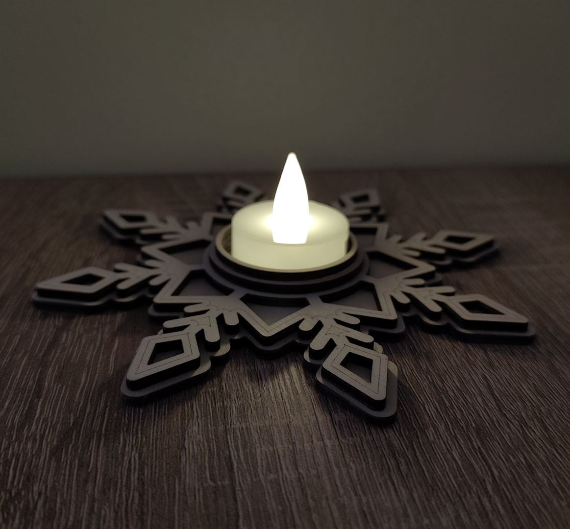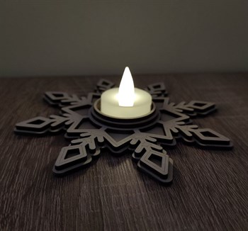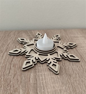 Specifikace: Březová překližka 3 mm, rozměry výška 150 mm, šířka 150 mm, hloubka 30 mm včetně čajové LED svíčky.